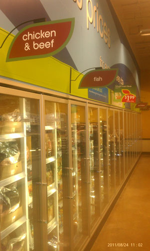 The major changes Tesco is in the process of making to its Fresh & Easy stores include: remodeling the store bakery sections and adding small in-store bakeries with ovens; moving the floral departments to the front of the stores; and replacing the reach-in style frozen food cases with more modern and energy-efficient upright frozen food display cases with glass door fronts. (You can see photos of the in-store bakery and upright frozen food cases